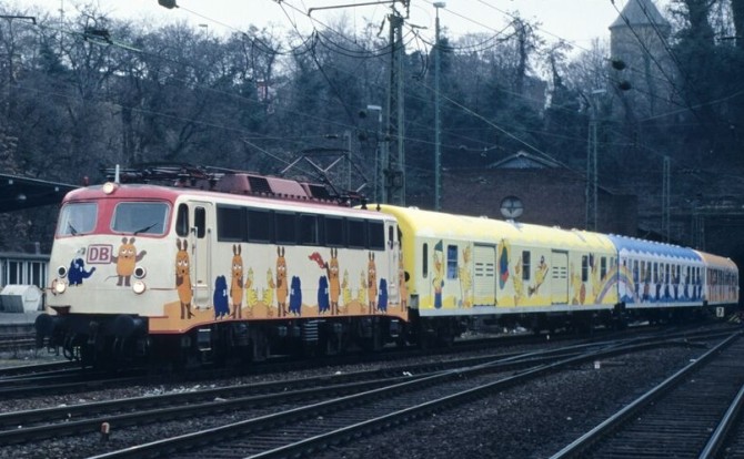 Die Elefant mit seinen Freunden auf dem Weg nach Düsseldorf. Copyright: Joachim Bügel / Slg. Eisenbahnstiftung
