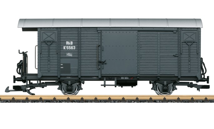 Viele Jahre waren die 2-achsigen gedeckten Güterwagen mit Holzaufbau vom Netz der Rhätischen Bahn nicht wegzudenken. Auch wenn sie heute durch modernere Wagen ersetzt wurden, sind noch einige davon erhalten geblieben, so auch der wieder mustergültig restaurierte und im ursprünglichen Grau lackierte K1 mit der Nummer 5563. Dieser Wagen wird mit passenden Personenwagen oft in historischen Zügen – meist bespannt mit einem der Krokodile oder einer Dampflok – eingesetzt um Gepäck und Fahrräder zu transportieren.